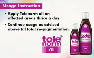 Tolenorm oil is a Proprietary Siddha Medicine which increases melanin synthesis and transfers the pigment melanin to the skin which restores its colour. It is specially formulated with non-polar actives for the treatment of Vitiligo and hypopigmentary problems.