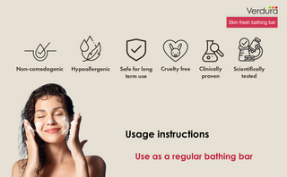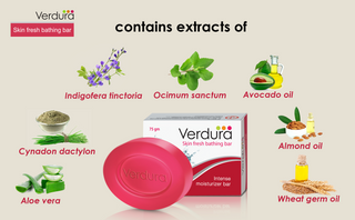 Verdura skin fresh bathing bar is a super fatted bathing bar with Vit E rich oils -Avacado oil, Almond oil, wheat germ oil, glycerin and herbal extracts that gives 3 in 1 benefit such as moisturisation, nourishment and protection to dry scaly skin. Helpful for psoriasis and dry skin