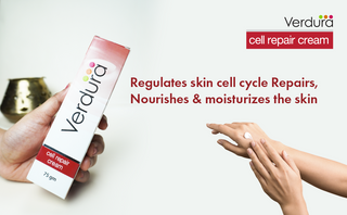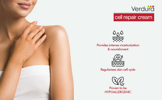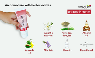 Verdura cell repair cream is enriched with the Vit E rich oils such as Almond oil, Avacado oil and contains glycerine & coco butter that gives long lasting emolliency and humectancy.