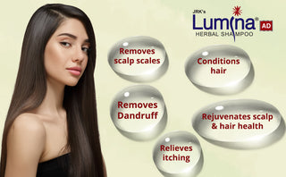 Presenting JRK's Lumina AD Herbal Shampoo, the best 'biological cleanser' of Dandruff and scalp scales. It effectively. removes dandruff causing agents and scalp scaling.